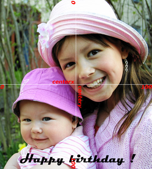 A. centerx=(%) Represents the location of the horizontal text field in percentage (i.e., 51%). B. centery=(%) Represents the location of the vertical text field in percentage (i.e., 94%). |