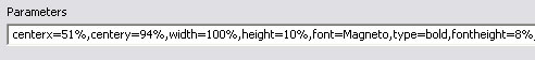 L. rotate=(degree of rotation) Defines the rotation of the text field (i.e., 90). M. alpha=(0-255) Defines the text alpha transparency (i.e., 100). |